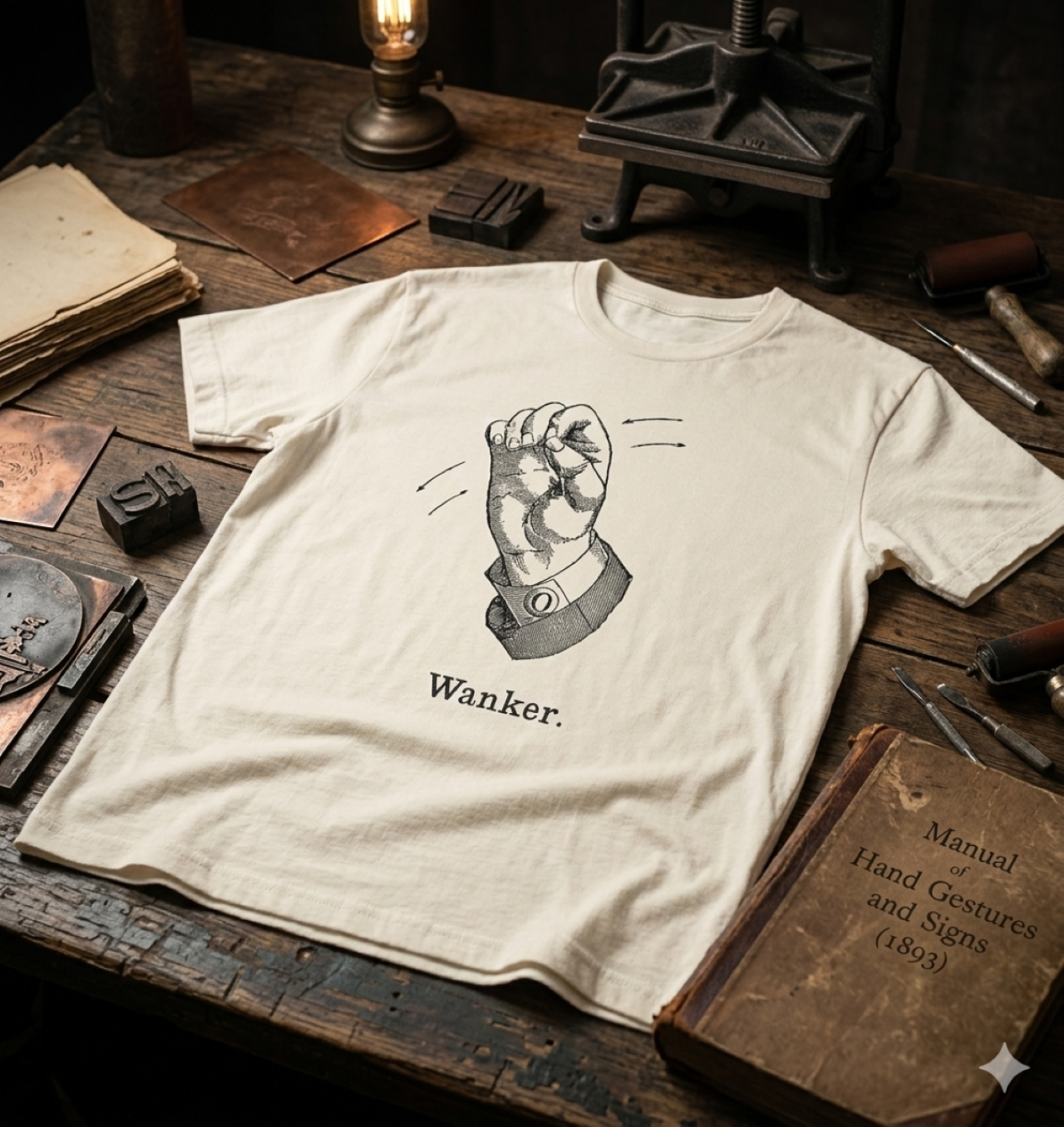 Graphic T-Shirt — Vintage Hand Gesture "Wanker." Tee